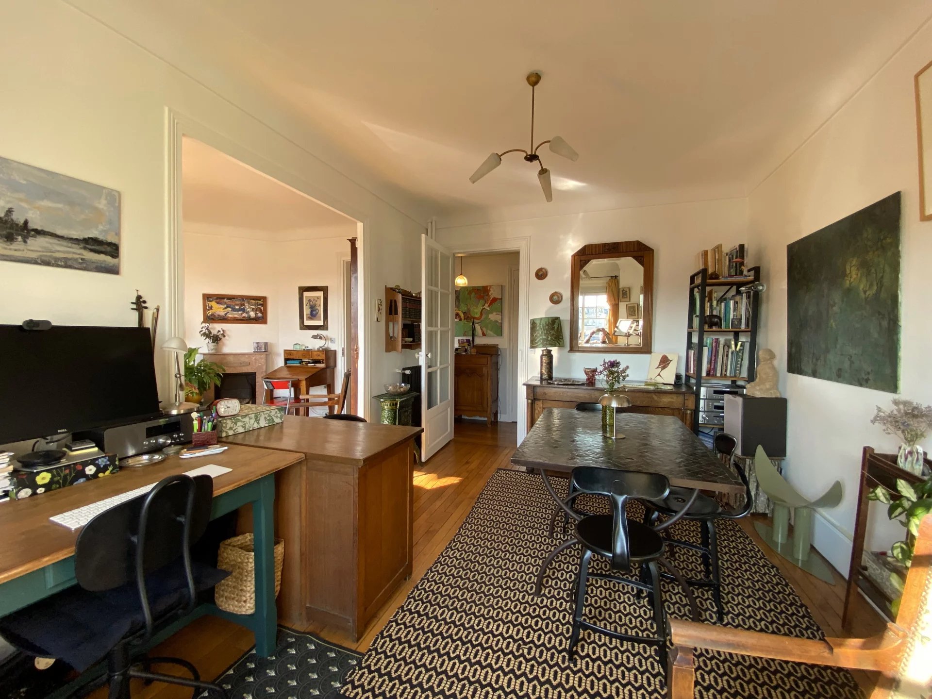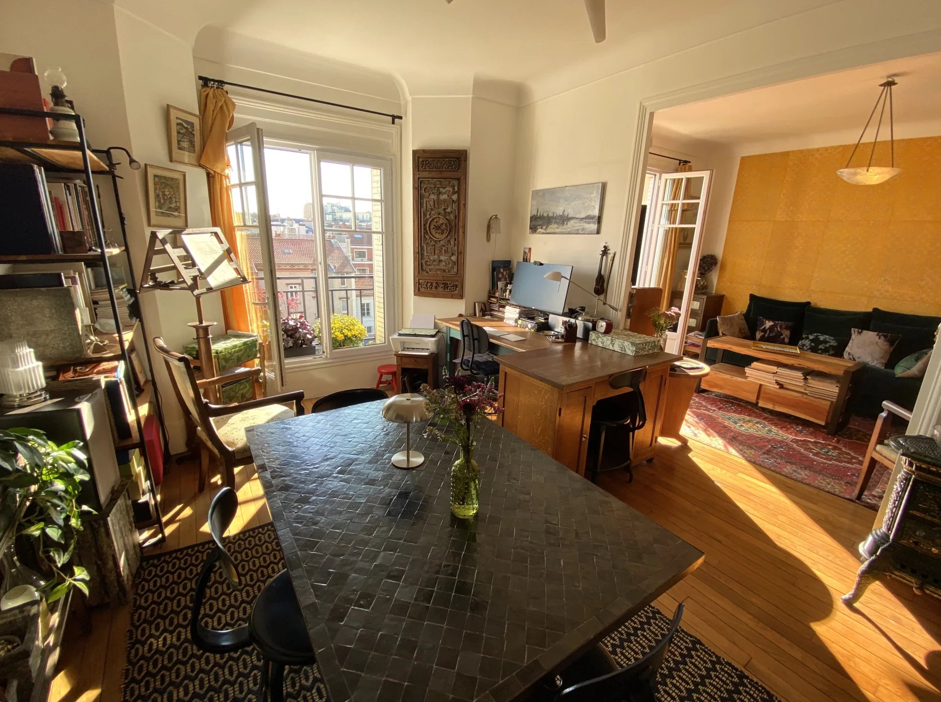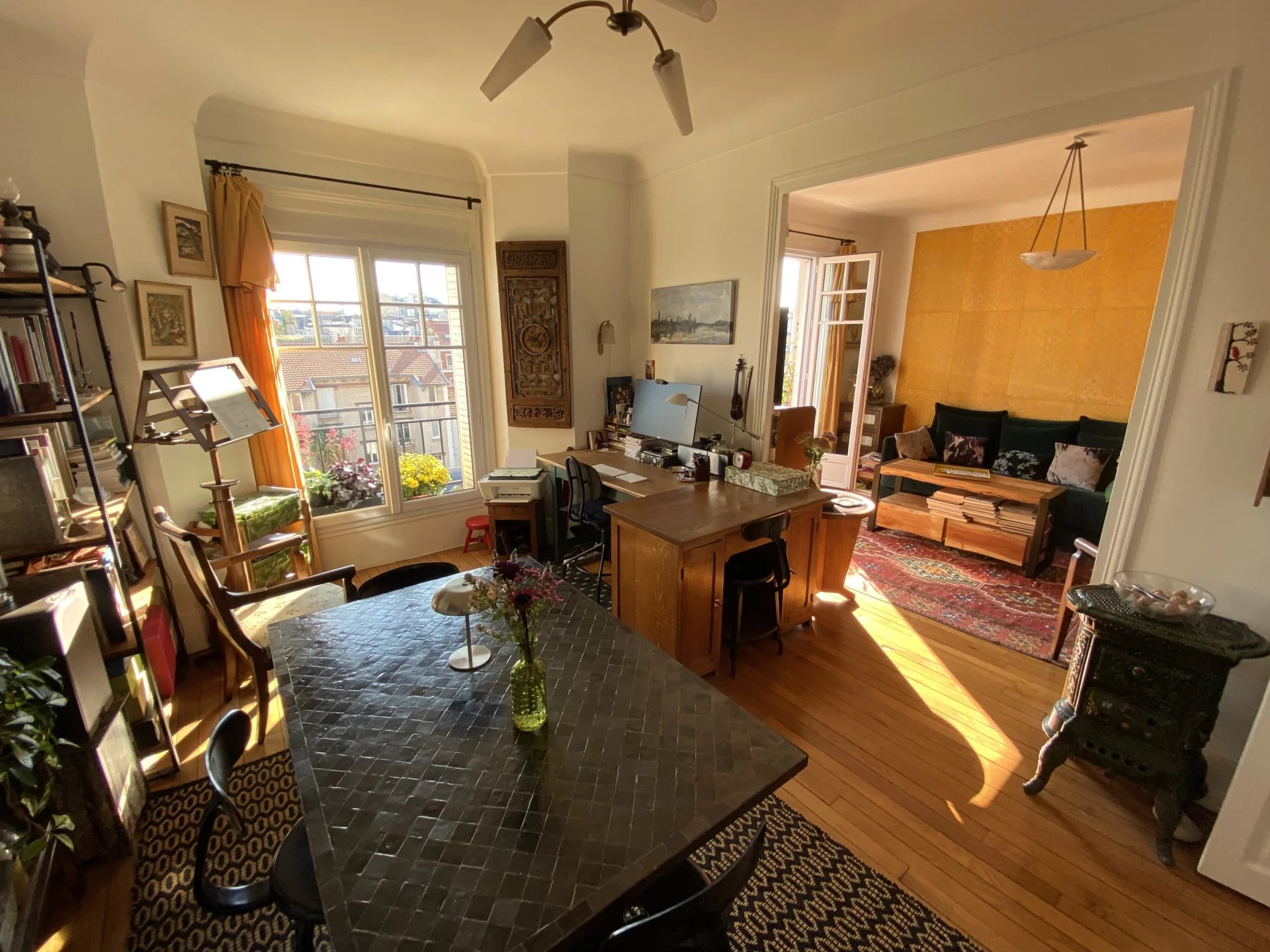 Idéalement situé au calme de la rue Mahias, à deux pas de l'église, du marché Escudier et du métro Jaurès. Dans un immeuble 1930 de standing avec gardien à jour de ses travaux, au 5ème étage par ascenseur, un ravissant appartement 3P de charme offrant calme, soleil et vue dégagée sans aucun vis à vis comprenant : Entrée avec rangement, un lumineux salon ouvrant sur balcon avec une superbe vue dégagée sur l'église et la Tour Eiffel, un salon dînatoire avec bow-window (Poss 2nd chambre), une cuisine aménagée, une belle chambre au calme sur cour avec dressing, une salle d'eau, wc séparés. Une cave au sous-sol complète le bien. Beaucoup de charme. Parquet chêne, cheminée. Soleil, Vue panoramique. Aucun vis à vis. Calme. Traversant. Classe énergie F, Classe climat F. Montant moyen estimé des dépenses annuelles d’énergie pour un usage standard, établi à partir des prix de l’énergie au 1er Janvier 2021 entre 1816€ et 2456€. Honoraires inclus de 3% TTC à la charge de l’acquéreur.